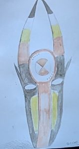 A gauche le masque Nyati spoliée durant la colonisation allemande, à droite la représentation d’un jeune.