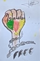 Un atelier créatif d’expression, dessin et peinture a également été mis en place par Ismail Nsangou et Nassir Mamoudou. L’objectif était de permettre aux participants de représenter ce qu’ils avaient vu, entendu et compris de l’histoire coloniale exposée. La majorité des enfants et jeunes ont représenté des scènes liées à la résistance, à la justice et à l’injustice, ainsi que les artéfacts observés, parfois replacés dans leurs espaces culturels ou dans leur état de spoliation. Les mêmes 68 jeunes précédents ont participé à cet atelier créatif, le même jour. Les représentations créatives se sont résumées en : les artéfacts représentés ; les faits historiques suivi tel que la liberté, la domination ; l’emblème du Kamerun, la ségrégation ; la résistance et l’armée.