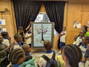 L’exposition mettait en lumière les questions liées à la mémoire collective, aux héritages culturels, à l’invisibilisation de l’histoire et les valeurs portées par certaines figures historiques. Les médiateurs de doual’art ont conçu des activités ludiques, notamment un jeu de cartes autour des figures historiques et un atelier créatif durant lequel les jeunes reconstituaient un arbre, métaphore de l’humain qui pense et panse.